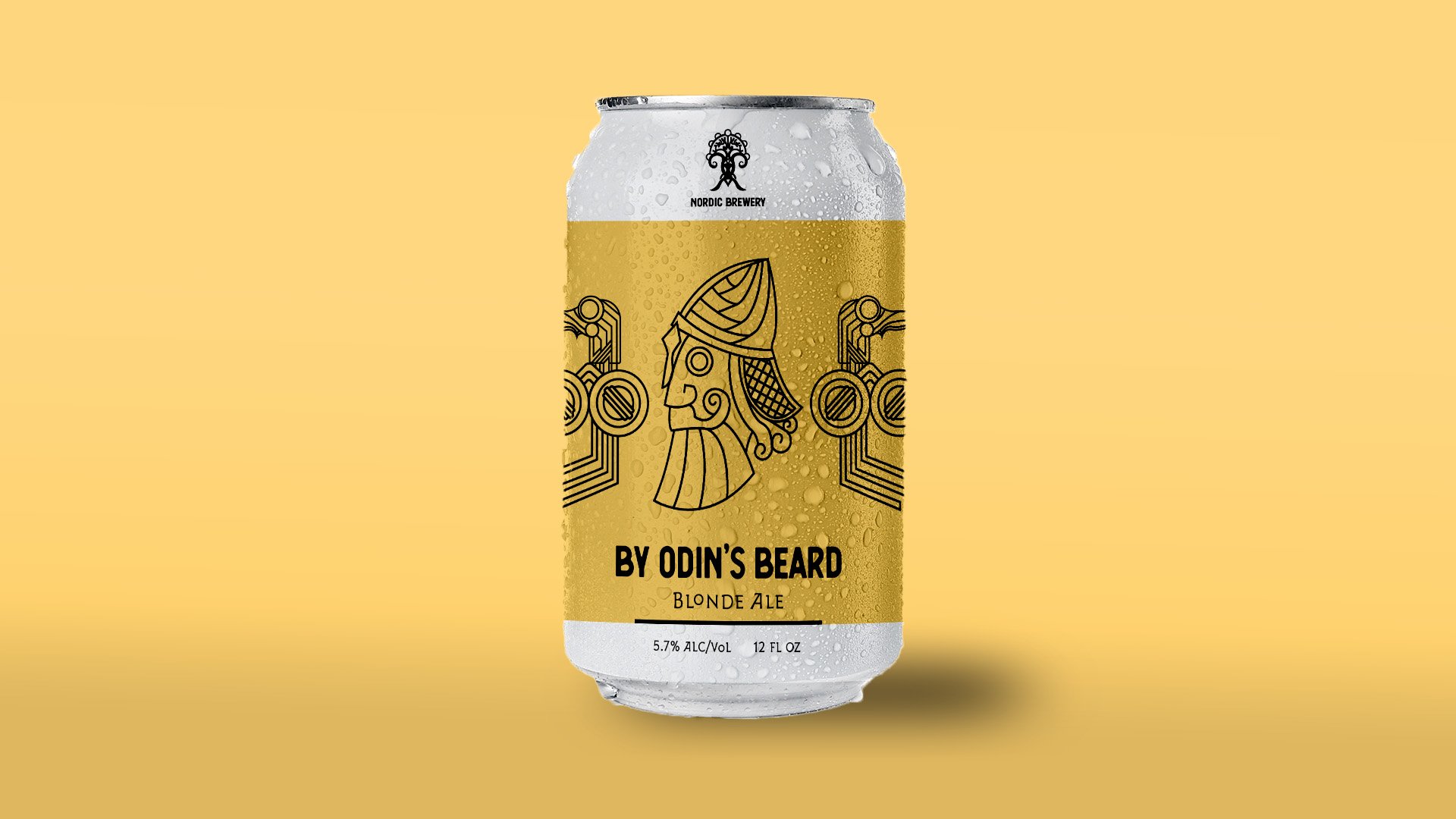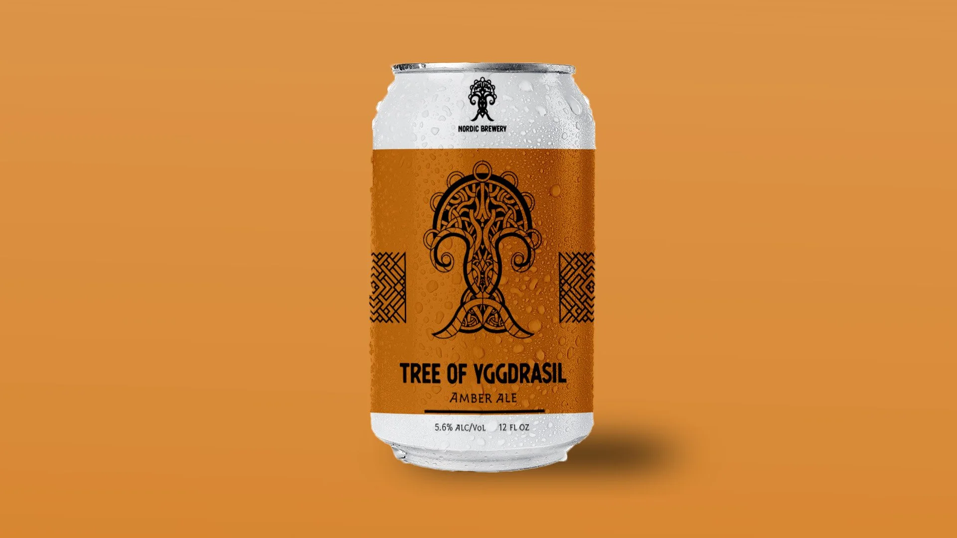 The brand focuses on four different mockup examples: By Odin’s Beard, a light refreshing blonde ale. Fenrir’s Bite IPA, a hoppy and bold IPA. Draugr Lager, an undead cool light beer. And The Tree of Yggdrasil’s Amber, a malty amber ale that brings life to all nine realms.